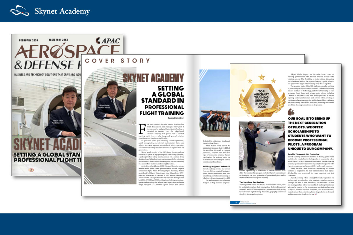 最後に主訓練地の仙台という立地の良さです。エアラインや航空大学校、海上保安庁機が飛び交うトラフィックの中で、2本の滑走路を活かして効率的に訓練が行なえます。空港外に目を移してみると、エアワーク(空中操作)を行う空域やナビゲーション(航法)訓練のための空港が近隣にあり、短時間で仕上がるための環境があります。